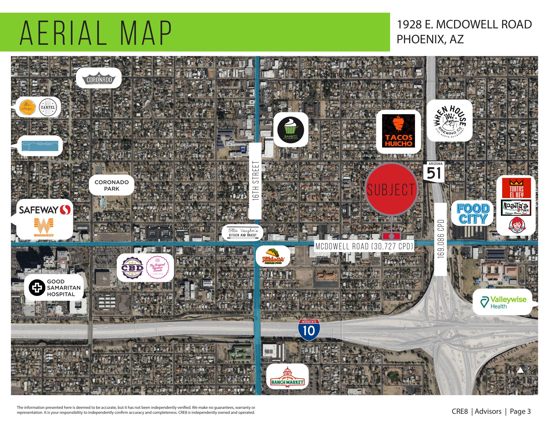 End cap building for sale on the McDowell Miracle Mile District. Located on McDowell Road with very high traffic counts: State Route 51 (169,086 VPD) and McDowell Rd (30,727 VPD). Total of 2 bays but can be converted to 3 bays in the building. Roll up door on the east unit. C-2 Zoning. Excellent frontage on McDowell Road (153 feet). Good parking with spots on both the east and west of the structure. Building SF: 7,200 SF.